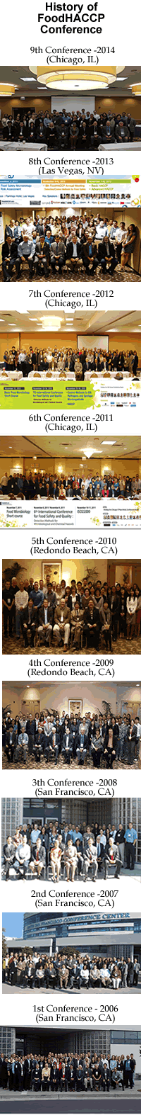 Testimonials from Attendees Awesome!!! Enjoyed every Minute. Couldn't have asked for a better learning experience. Rory - Grimmway Farms This conference was Extremely informative well organized and executed. I will continuously attend again. Orlean - Golden Krust Caribbean Bakery Excellent selection of speakers. I would definitely recommend this program to others. Carl - Annies Inc. Excellent Speakers. Surely, I will attend the next one. Well organized. Luis - University of Texas Enjoyed myself.. Great Great Conference Leonard -Thermo King Excellent Experience. I am incredibly happy to have attended. I fully intend on attending the 7th. Michael - Greater Chicago Food Depository I can get various information about food safety and quality. Takeshi - NEC Japan. Excellent coverage of topics. I will come again. Tim - bioMerieux Great Speakers and Great Information Ellen - Proliant Excellent 2 days conference very informative presentations. Excellent Resource form all food companies. Susen- Masterson Co. Very Interesting and Learned a lot. Connie - Procter Gamble and more-- Copyright